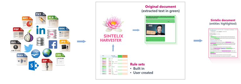 So harvesting is the process of selecting the elements to include and ignoring unwanted elements from a page and then saving the wanted elements into a Sintelix document.
