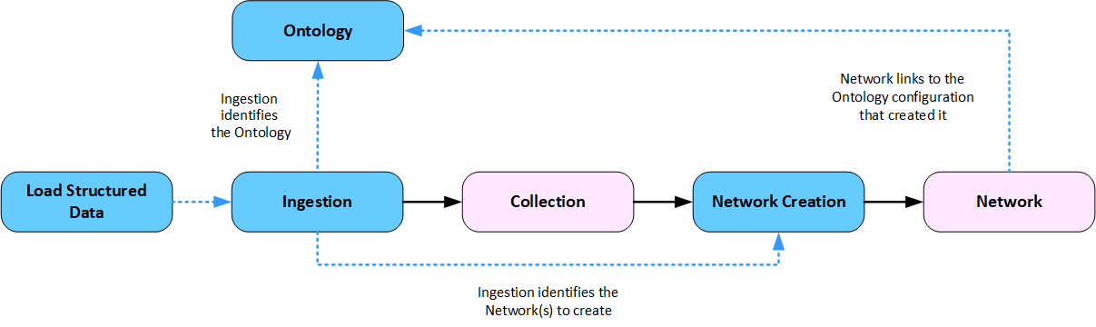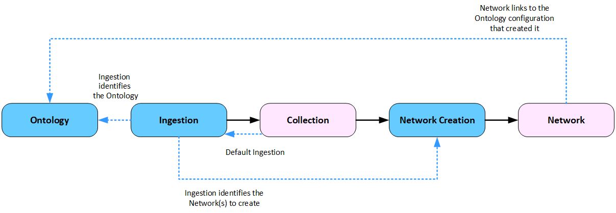 The Ingestion, Ontology and Network Creation configurations in integrally linked. It is helpful to understand how they interact.