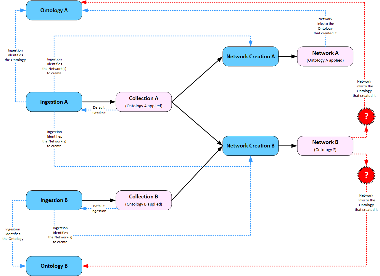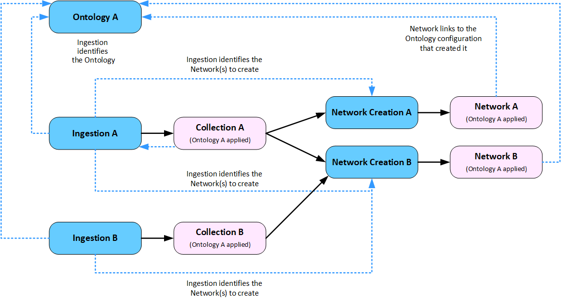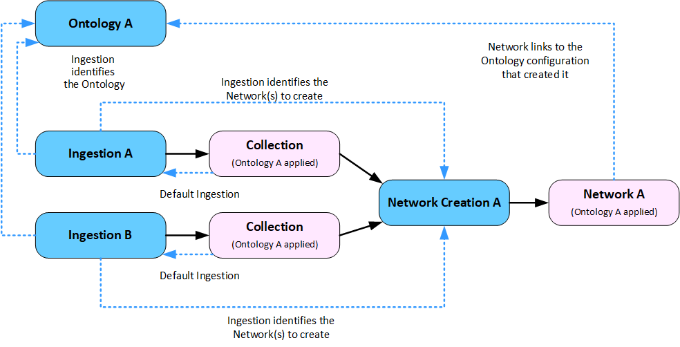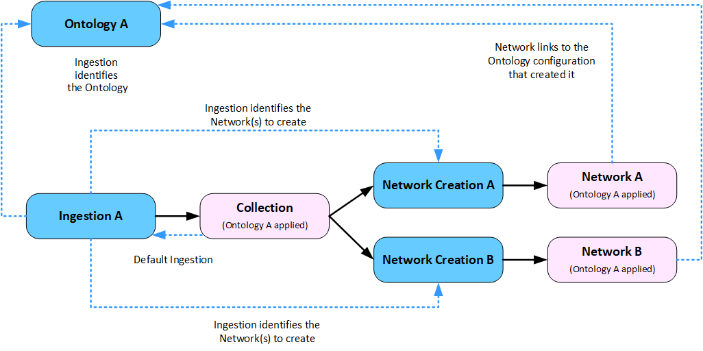 Understanding how the Ingestion, Ontology and Network Creation configurations interact between Collections and Networks can help you decide how best to structure your analysis.