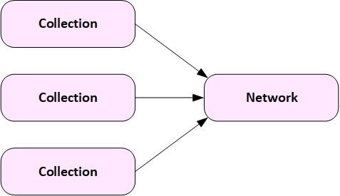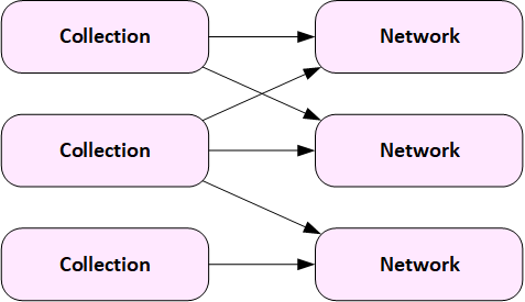 The diagram below shows a more complex structure with multiple Collections loading data into multiple Networks.