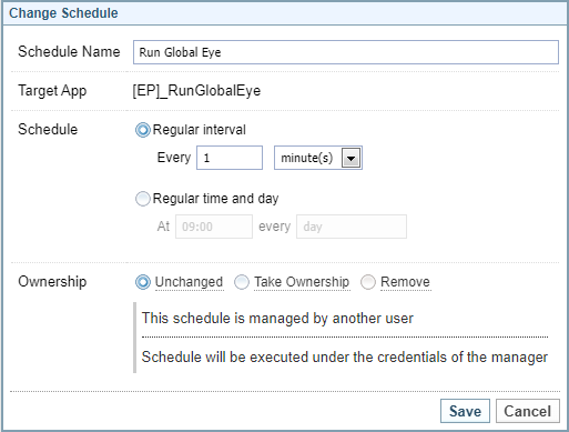 User security applies: The security credentials of the user who controls the schedule applies.