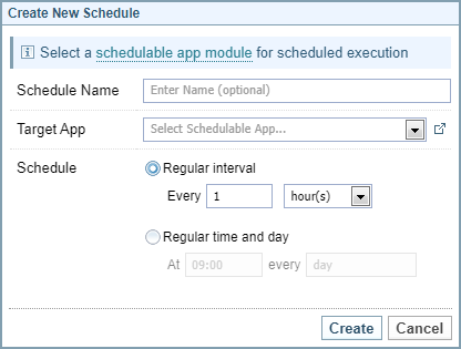 The following fields are required when you create a schedule: