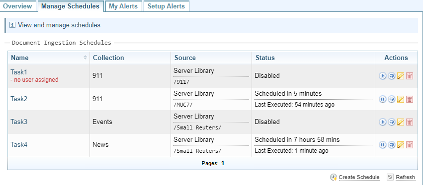 Note: The number on the Collections Schedules tab indicates the number of ingestion schedules created. If any have been suspended, the number of currently scheduled ingestions is shown against the total.