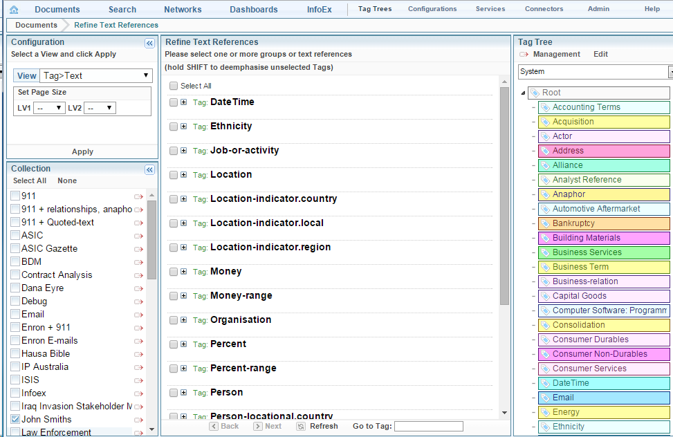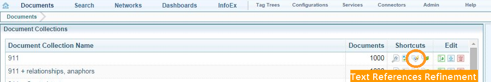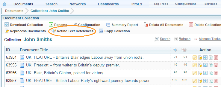 - Select a Collection, then select Refine Text References in the Document Collection actions.