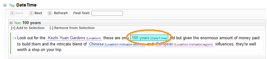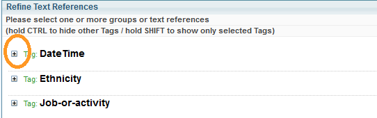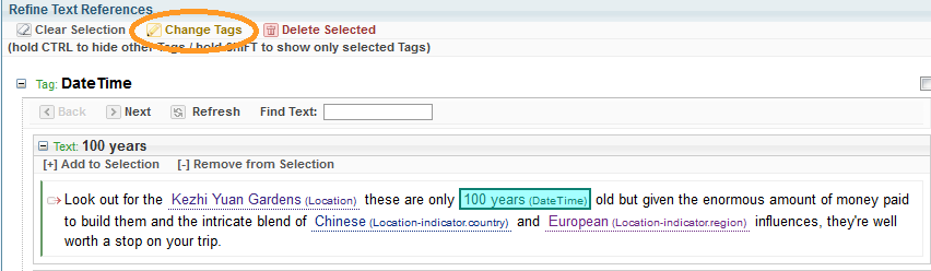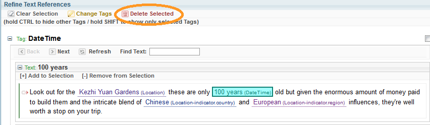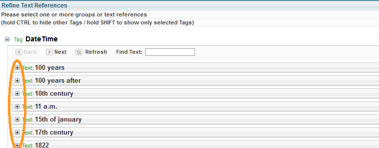 - From the Refine Text References pane, select the + button next to the reference you want to refine.