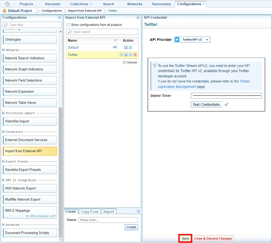 - From the Import Configuration dropdown list select the API configuration you created with your Twitter credentials.
