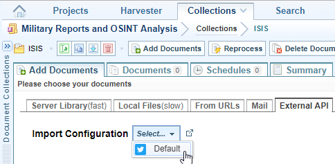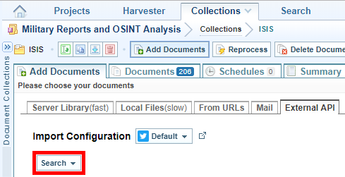 - On the Main Navigation Bar select Collections then either open the collection in which you want to ingest the tweets or create a new collection.