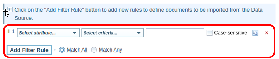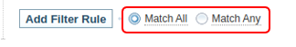 Match All, and Match Any options are available next to the Add Filter Rule button. If all rules must be matched, select the Match All, which is the default option. Match Any will search for data which matches at least one rule.