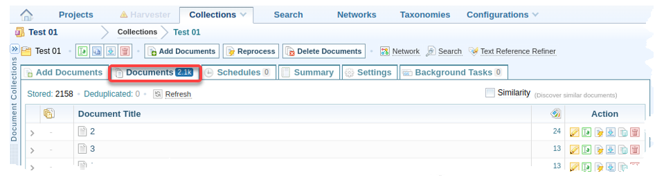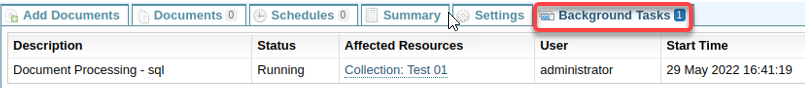 Result: Sintelix will begin ingesting the documents. Progress can be viewed under the Background Tasks tab. As each document has been ingested, it is added to the Collection and can be viewed in the