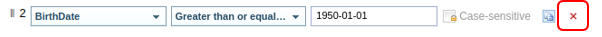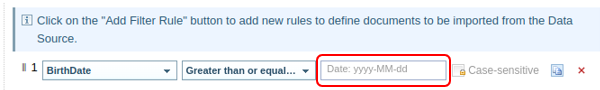 If the attribute has a case-sensitive data type, the Case-sensitive check box will be enabled. The default value is unchecked, meaning the case is ignored during filtration. Select the check box to turn on case-sensitive.