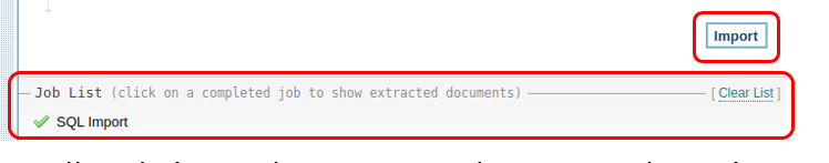 Select Import to launch an import task in Sintelix. This will add a new SQL Import job in the Job List below the Import button.