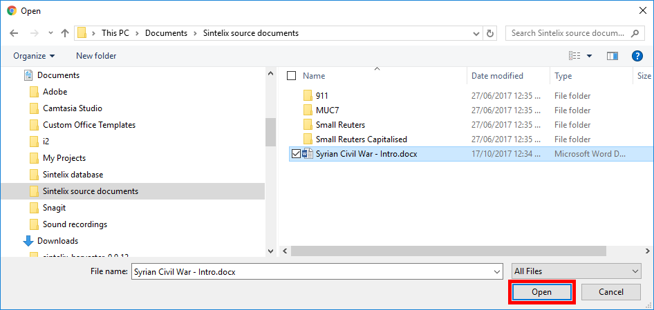 See Add (Ingest) Documents. for more information on the different methods of adding source files into Sintelix.