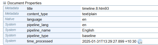 The detected language and pipeline are displayed in the Document Properties section: