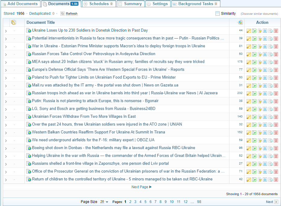 Updates the list to show the latest data. Is useful when changes have been made to documents and those changes are now showing in the list. |