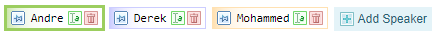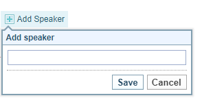 - In the Add new Speaker dialog, enter a name of the speaker and click Add Speaker, then select the assigned speaker.