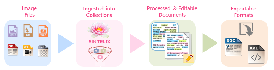 OCR works while files are being ingested, converting image files into text documents for analysis in Sintelix, as illustrated below: