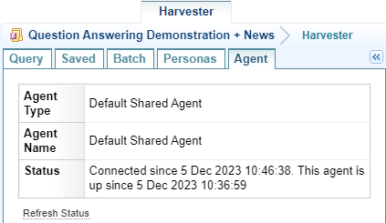 Harvester > Agent tab.