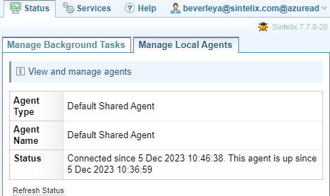 Status > Manage Local Agent tab.