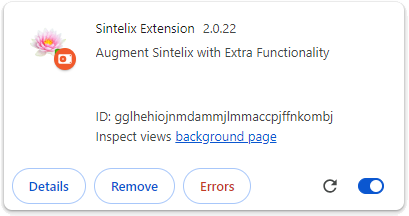 find the Sintelix Extension and select the Details button to display the extension details