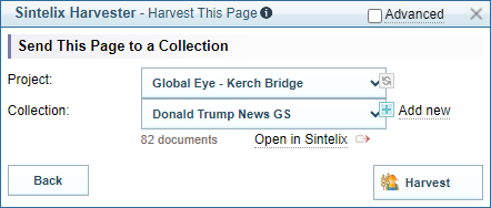 Choose the Project and Collection where you want to save the harvested page.