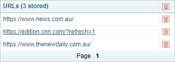 To clear the list (remove all stored URLs from the list), select the delete icon