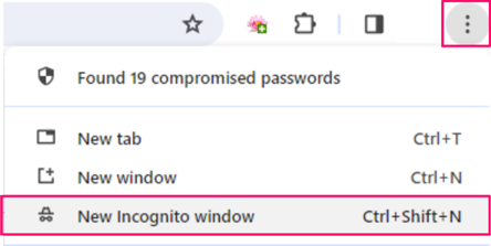 open a new browser window in Incognito mode ( see Browse in Incognito Mode)
