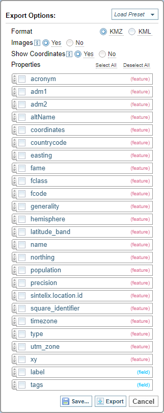 When you select save, the Save GeoData Export Preset As dialog is displayed.