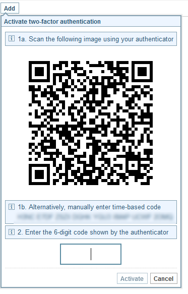 - Scan the image displayed on your Activate two-factor authentication dialog