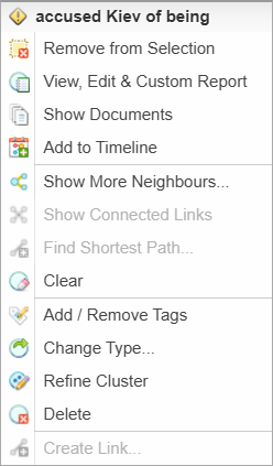 Change Node Type to change a selected node from one entity type to another, for example, from Location to Person.