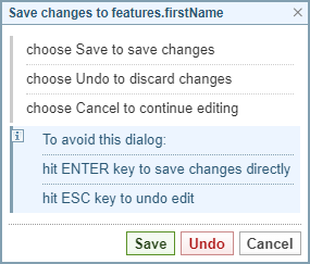 Pressing TAB to move to the next field will display a dialog box to confirm the changes.