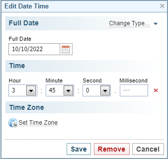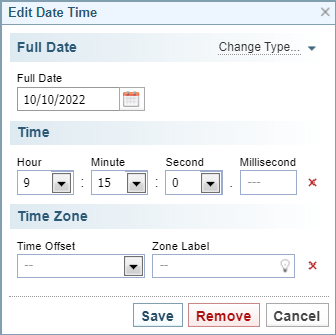 If you want to clear the field, that is remove the existing Date Time set, select the Remove button.