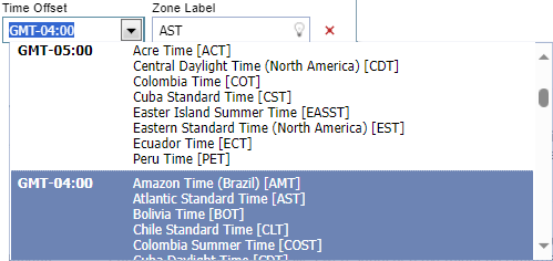 Result: Two fields are displayed: Time Offset and Zone Label.