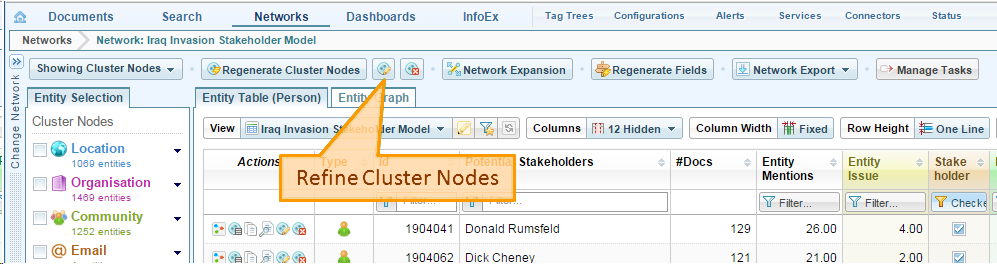 This page is reached by clicking the Refine Cluster Nodes button on the Network Action Ribbon.