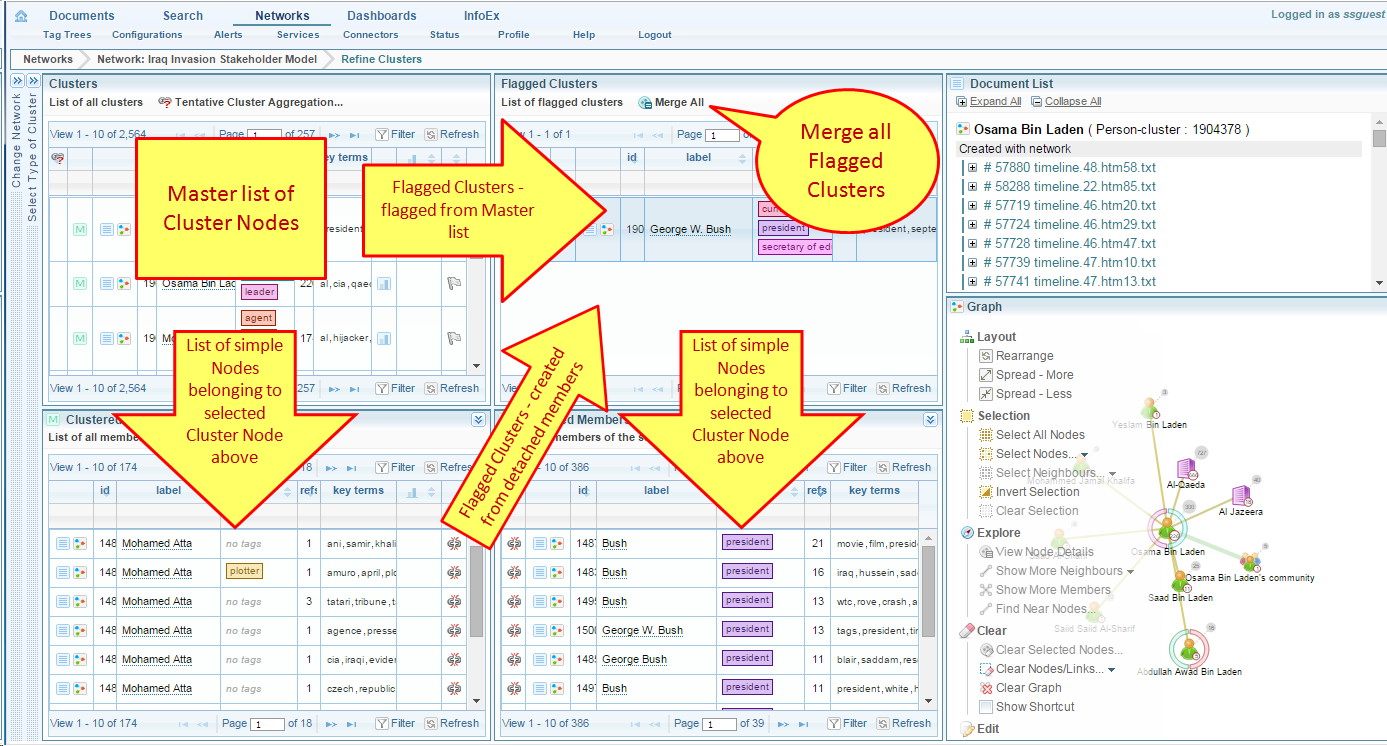 Clusters can be deleted and renamed from the Network View or the Graph View. The graph view for a node is easily accessed from this page as discussed under Drill-down.