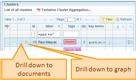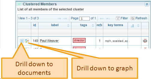 - Drill down to document as well as show graph for a cluster or cluster member.