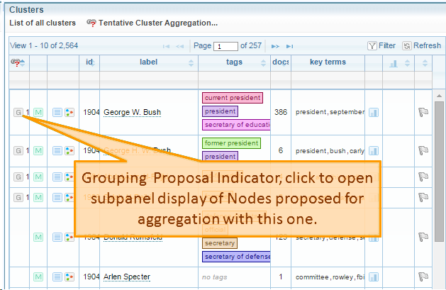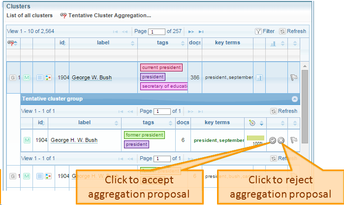 Once the tool has run, the proposed clusters can be examined for fit before accepting the proposed cluster. Each proposal can be accepted or rejected individually.
