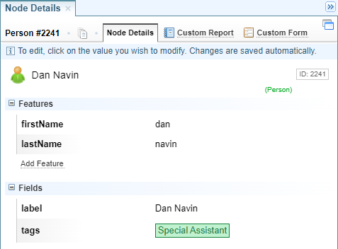 You can view, report and edit the fields and features associated with nodes: