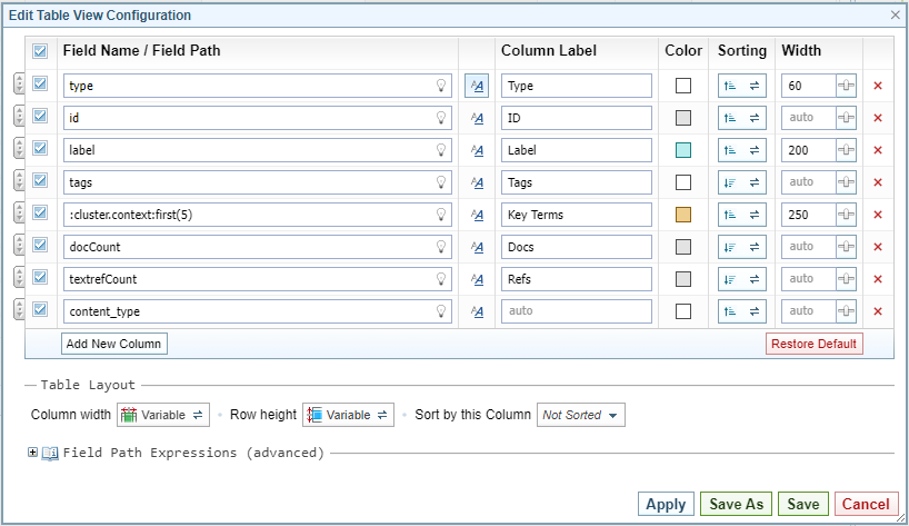 In the Edit Table View Configuration dialog, Edit the Table View.