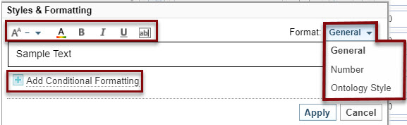 Applying conditional formatting to an Ontology Style, will override the Ontology style.