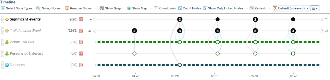 The Timeline Graph graphically displays the nodes and links organised along a timeline.