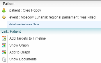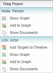 Creates a new Network Graph adding all nodes and links currently displayed in the Timeline. Hold the SHIFT key and select Add to Graph to add to an existing graph. |