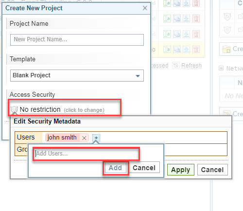 To restrict access to the project to one or more users or groups, do the following: