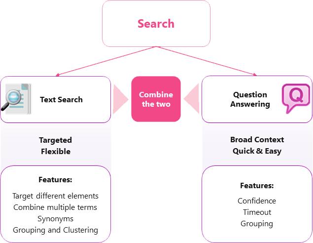 The two ways to search in Sintelix are Text Search and Question Answering. You can also combine Question Answering with a Text Search.