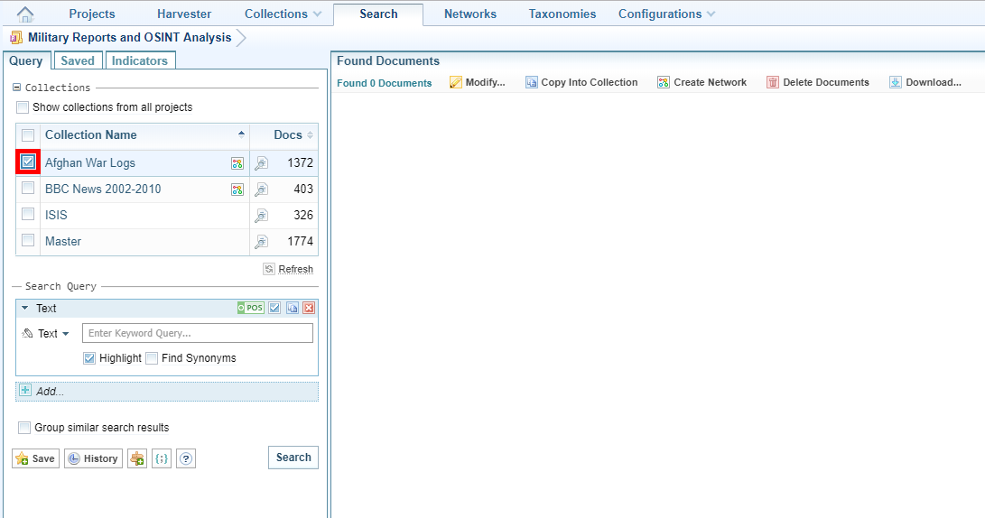 - In the Query tab, select the collections to search.