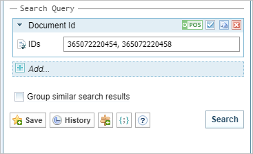 - In the IDs field enter the Document ID. If you enter multiple IDs, separate them with a comma, or a space.