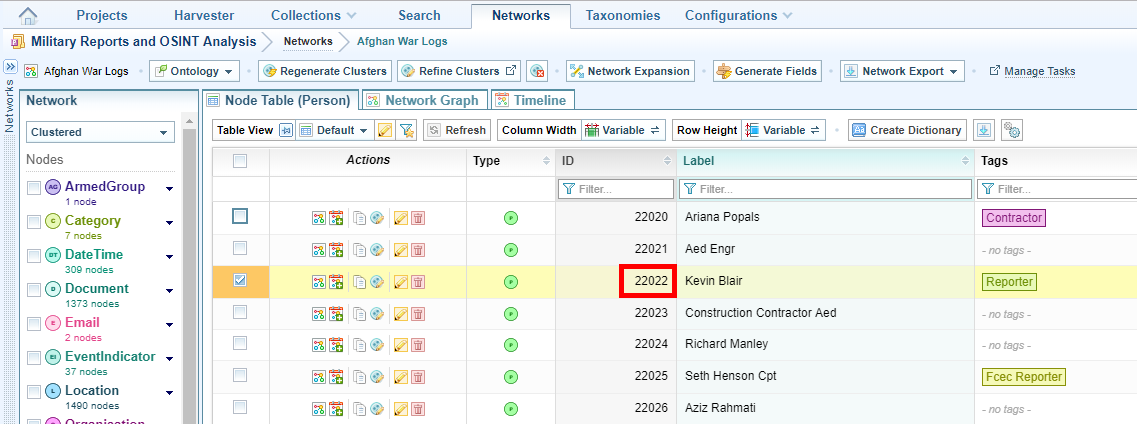To find a network node ID, open the network, find the relevant node in table view, then refer to the ID column.