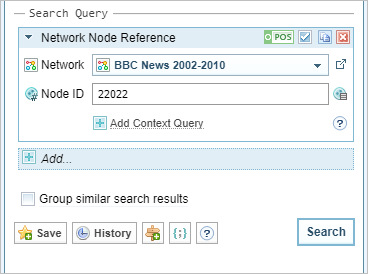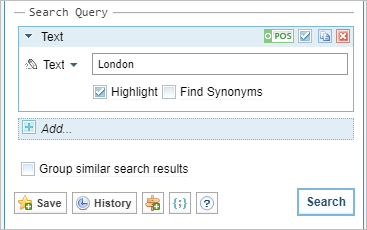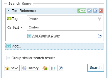 - Context is used to refine search results so that only text references that meet a specified context criteria are returned in search results. To add another context item as an alternative (for example, an OR operation), click Add Context Query, then enter the query. For more information see Context query language.