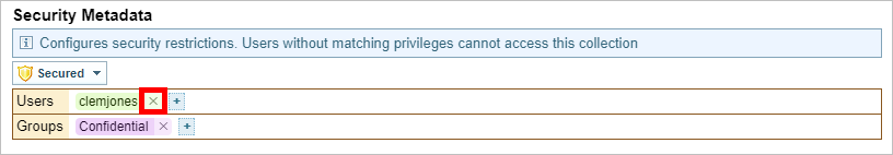 To remove users or security groups in the Edit Security Metadata dialog: