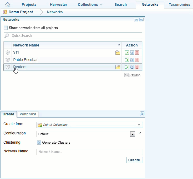 See Manage Project Security to understand how security is managed for projects, collections and networks under the default Sintelix Security Model.