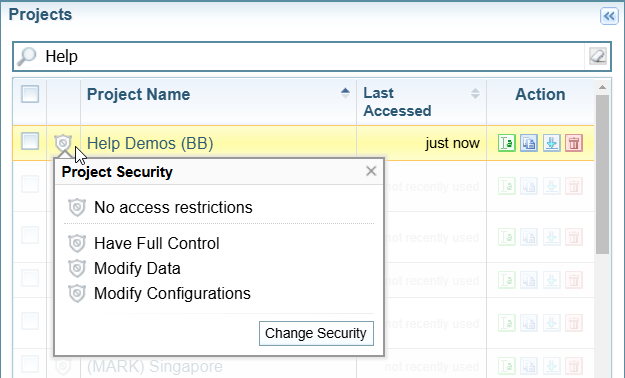 Access the Edit Project Security